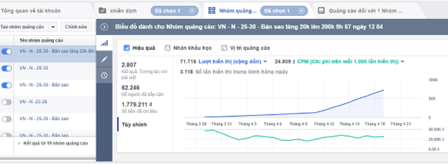 Ban đầu khi CPM của mình ở mức 35-40k tổng lượt hiển thị rất thấp và ads lan tỏa (reach rất chậm) tuy nhiên khi tối ưu được CPM mình đã tiếp cận được số lượng người nhiều hơn đáng kể. Chỉ cần bơm nhẹ thêm ngân sách vào quảng cáo là mình sẽ gia tăng được cơ hội hơn cho chiến dịch này.