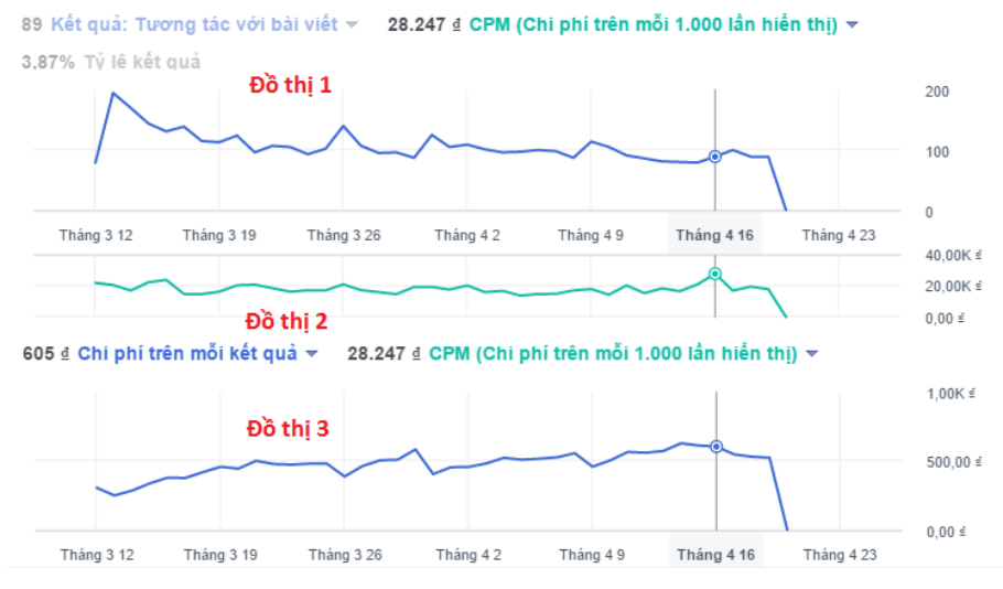 - CPM giảm mà CR giảm, CPA tăng cần phải theo dõi, nếu giảm mạnh tiếp tục thì phải tối ưu lại hoặc loại bỏ chiến dịch hiện tại.
