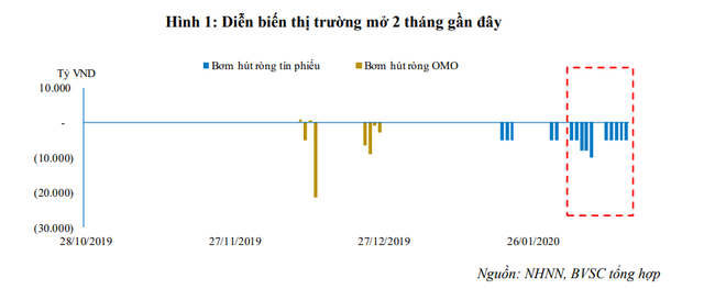 Theo báo cáo, tuần qua, NHNN đã thực hiện hút ròng 25.000 tỷ đồng qua thị trường mở. Cụ thể, NHNN đã phát hành mới 25.000 tỷ đồng tín phiếu mới (kỳ hạn 91 ngày với mức lãi suất duy trì ở mức 2,65%) và không có lượng tín phiếu đáo hạn nào.