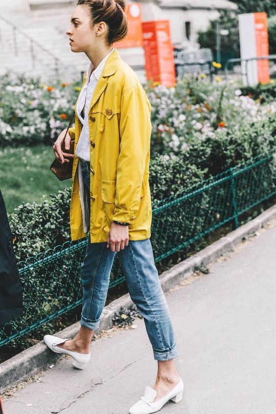 Giày trắng tôn thêm vẻ đẹp thanh lịch của gam màu vàng Primrose.